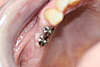 Remplacement d'une molaire du maxillaire inférieur par une couronne dentaire scellée sur cet implant.