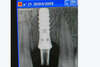b) Remplacement d'une incisive centrale supérieure droite